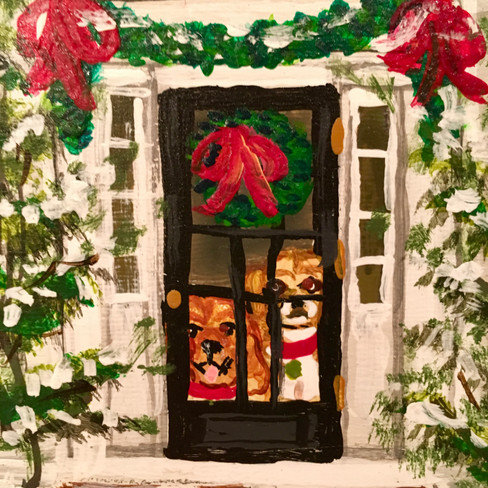 I had the honor of creating a large acrylic on birch board house portrait for a dear family in Hamilton with quite a menagerie of furry companions. The challenge was including all pets and favorite wild animals with their house. Luckily the sizes ranged from little guinea pig to large horse so there were ample windows, branches and doorways in which to include the gang.